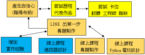*做好 專題製作,求職 面試 技巧、線上課程 學習測試及 思維 的課程。