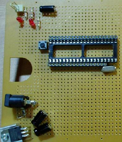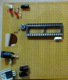 有些產品中含7805電路焊在電路板左下方,並鎖上散熱片,+9V 由此輸入。電源輸入接頭,可以利用剪下來的電阻線來連接