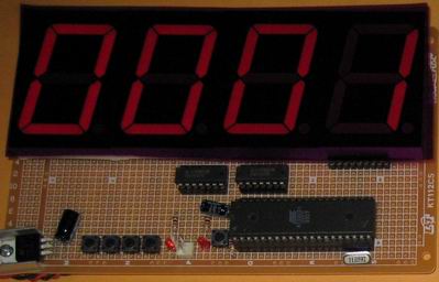 □硬體組成 : 89C51,4 個大型七節顯示器(5.5X4.0 CM),LED X 2 ,按鍵 X4