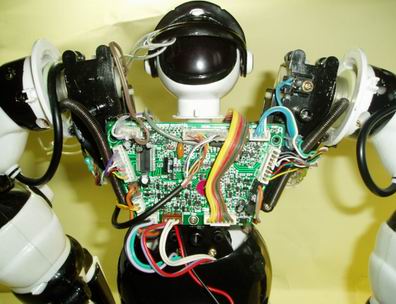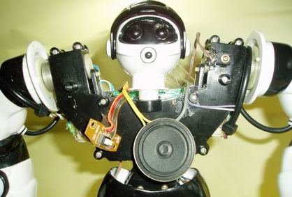 為了進一步研究史賓機器人的機構,將外殼拆去,並加上外部電源取代 4 顆電池