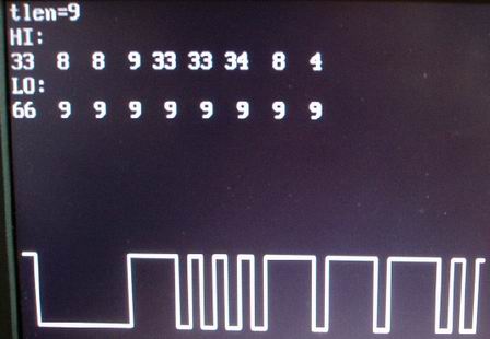 再來經由LIR 紅外線介面設計模組及控制程式來讀取數位控制信號波形,顯示在螢幕上,結果如下: