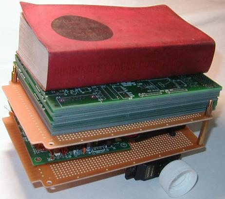 圖中所示為在 seir 上放上字典一本及電路板 10 片做測試,伺服車仍能自由行動。