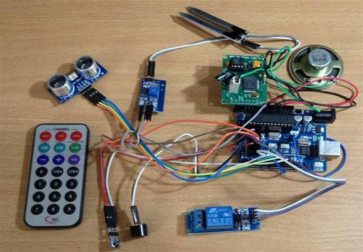 +遙控器+土壤溼度感知器+繼電器+水泵