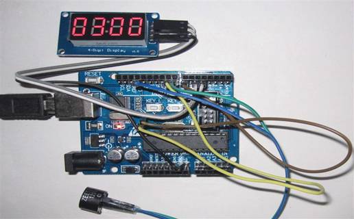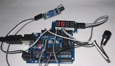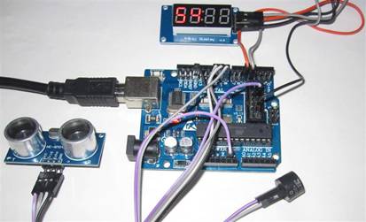 □系統組成:Arduino UNO相容板一片(已載入測試程式) +7節顯示器+溫濕度模組+壓電喇叭+超音波模組+接近感應器+繼電器模組+USB下載線