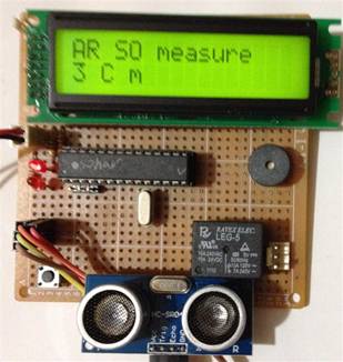 超音波模組偵測到的距離資料,由LCD 模組顯示